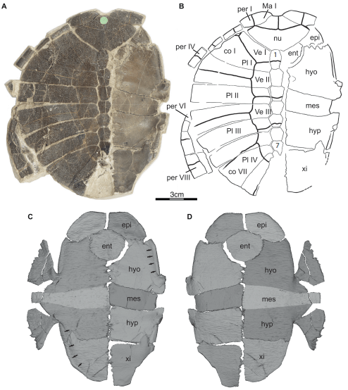 Références : Joyce, W.G.; Bourque J.R.; Fernandez V.; Rollot, Y. , 2022, An alternative interpretation of small-bodied turtles from the “Middle Purbeck” of England as a new species of compsemydid turtle. Fossil Record. 25: 263–274