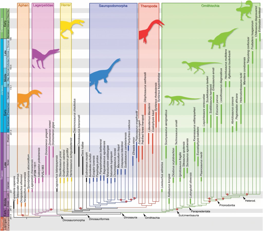 Baron, M.G.; Norman, D.B.; Barrett, P.M., 2017, A new hypothesis of dinosaur relationships and early dinosaur evolution. Nature. 543: 501–506.