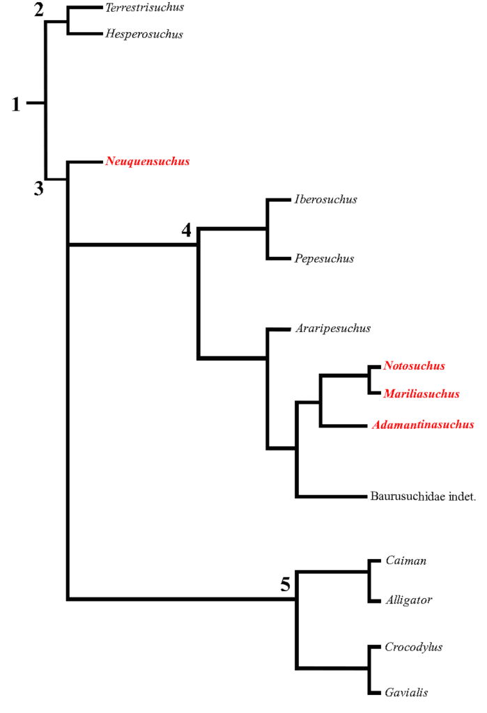 Fiorelli, L.; Calvo, J.O., 2008, New remains of Notosuchus terrestris Woodward, 1896 (Crocodyliformes: Mesoeucrocodylia) from the Late Cretaceous of Neuquén, Patagonia, Argentina. Arquivos Do Museu Nacional, Rio de Janeiro. 81(1): 83-124.