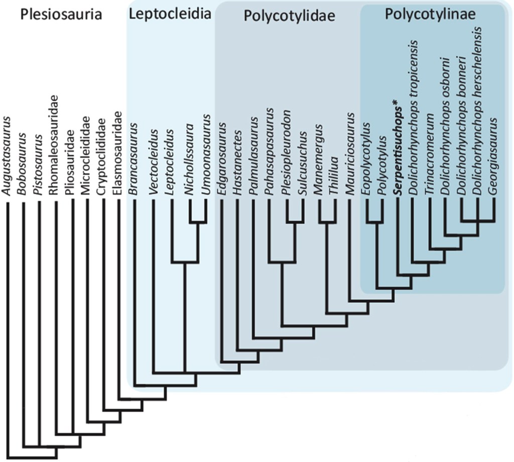 L’analyse phylogénétique de Persons et ses collègues place Serpentisuchops au sein des polycotylidés, en tant que membre basal des polycotylinés.