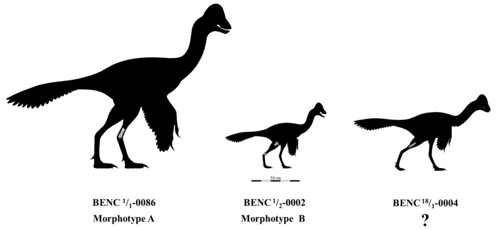 Des fragments d’un tibia (BENC 18/1-0004) ont été assignés à Oviraptorosauria indet. tandis que les extrémités d’un tibia droit (BENC 1/2-0002) et une extrémité distale d’un tibia gauche (BENC 1/1-0086) ont été assignés à Caenagnathidae indet. La différence de taille et de morphologie entre les spécimens BENC 1/2-0002 et BENC 1/1-0086 suggèrent la présence de deux morphotypes de caenagnathidés dans l’environnement de Cerro del Pueblo. Serrano-Brañas et ses collègues ont appelé BENC 1/1-0086 « Morphotype A » et BENC 1/2-0002 « Morphotype B ». Le troisième spécimen, BENC 18/1-0004, est trop fragmentaire pour fournir des informations suffisantes permettant de l’attribuer à l’un de ces deux morphotypes ou à un troisième différent.