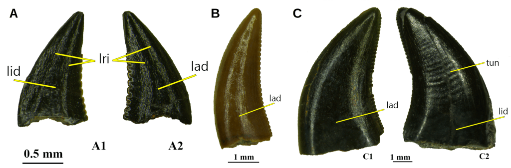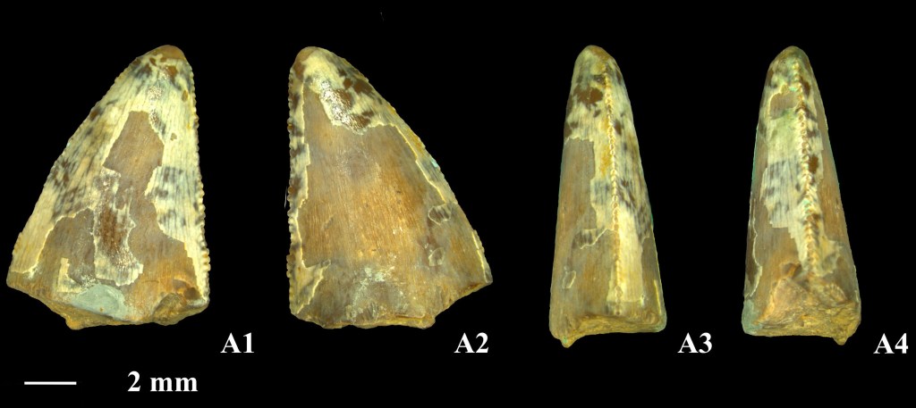 Référence : Berrocal-Casero, M.; Alcalde-Fuentes, M.R.; Audije-Gil, J.; Sevilla García, P., 2022, Theropod teeth from the upper Barremian (Lower Cretaceous) of Vadillos-1, Spain. Cretaceous Research. 105392.