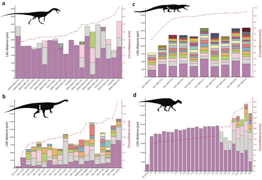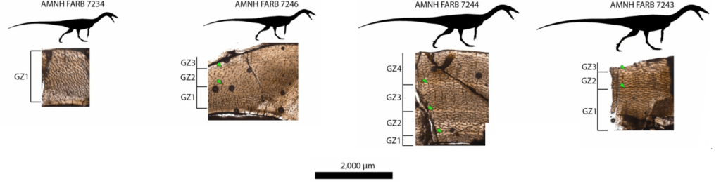 Références : Barta, D.E.; Griffin, C.T.; Norell, M.A., 2022, Osteohistology of a Triassic dinosaur population reveals highly variable growth trajectories typified early dinosaur ontogeny. Scientific Reports. 12: 17321.