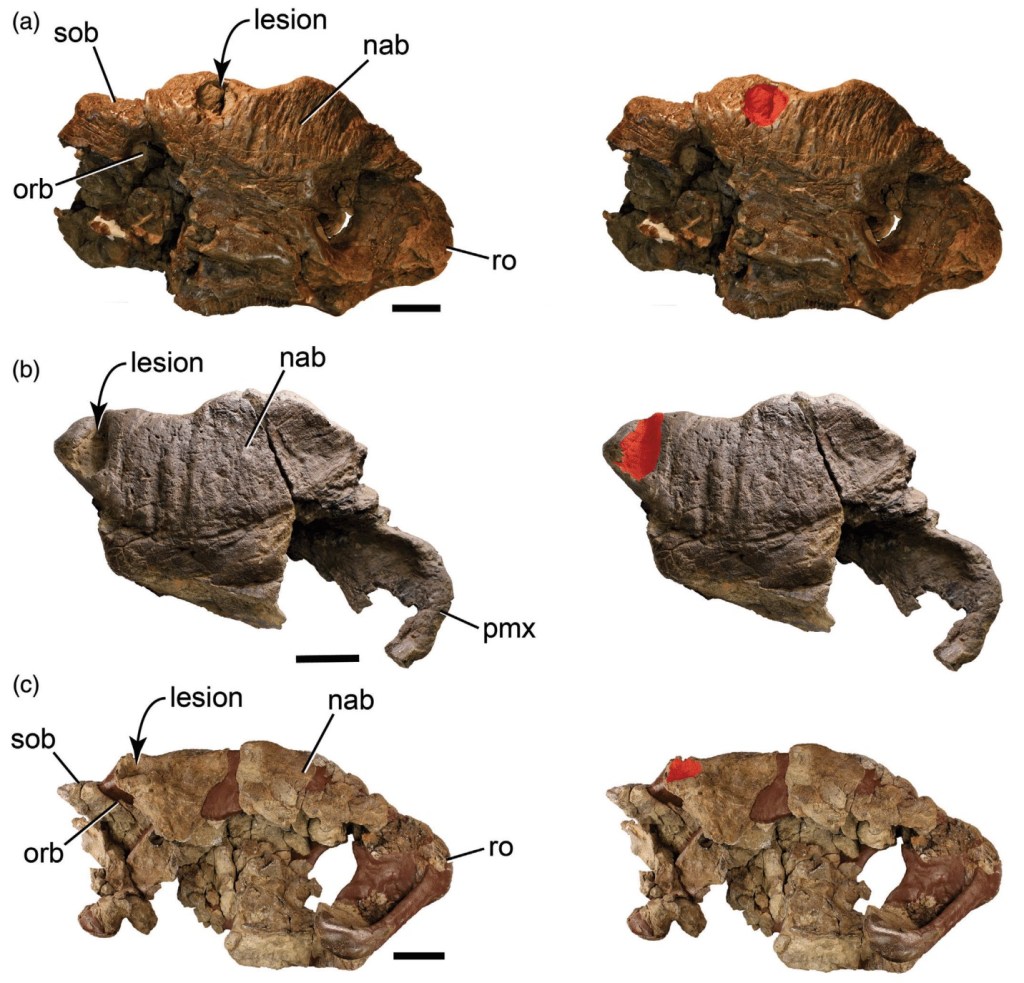 Références : Fiorillo, A.R.; Tykoski, R.S., 2022, Paleobiological inferences from paleopathological occurrences in the Arctic ceratopsian Pachyrhinosaurus perotorum. The Anatomical Record. 1–15.