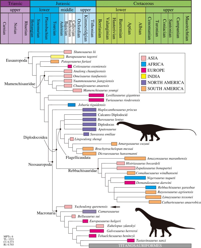 Dai et ses collègues ont réalisé une analyse paléobiogéographique des Neosauropoda pour en étudier l’origine paléogéographique. La présence de plusieurs genres de ce clade sur la plupart des continents au jurassique moyen et l’ajout du nouveau genre de macronarien datant de cette époque, Yuzhoulong, leur permet d’en conclure que la dispersion des neosauropodes s’est effectuée au moins à la fin du jurassique inférieur. De plus, la présence de Yuzhoulong, un genre lié phylogénétiquement à plusieurs genres du monde entier, vient démonter encore un peu plus l’hypothèse d’un isolement géographique de l’Asie du Sud-Est au jurassique.
