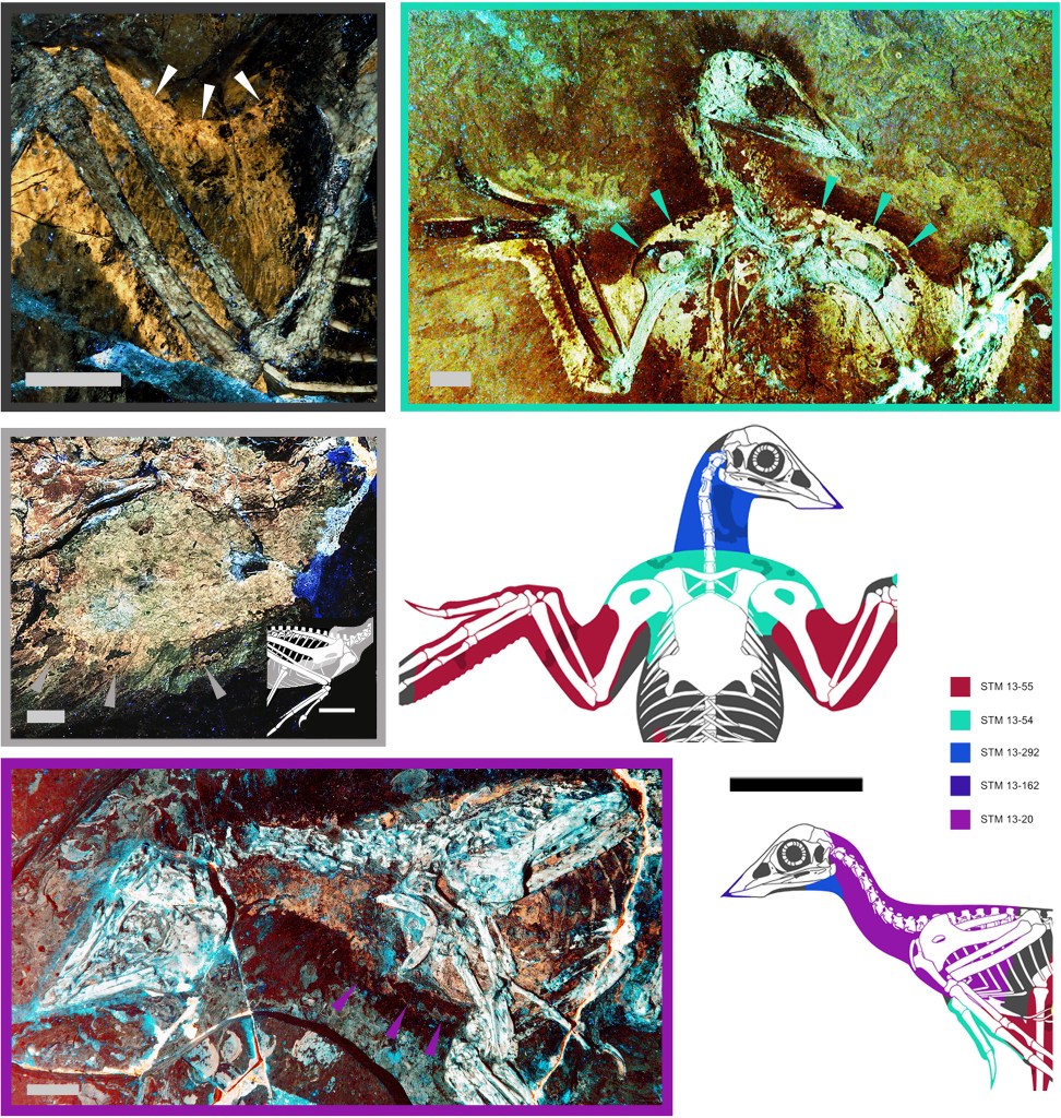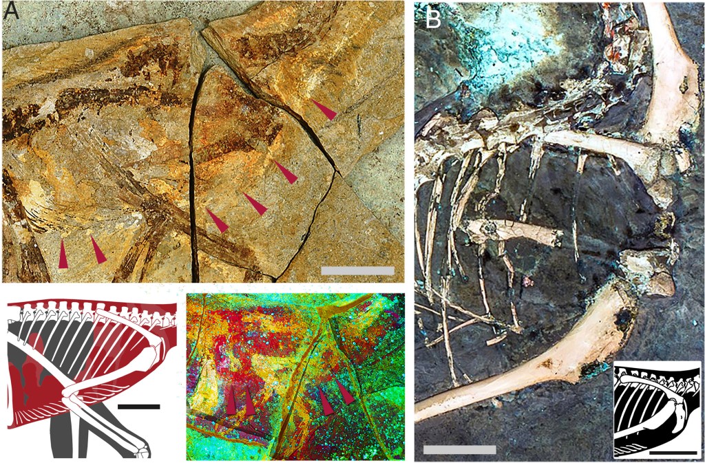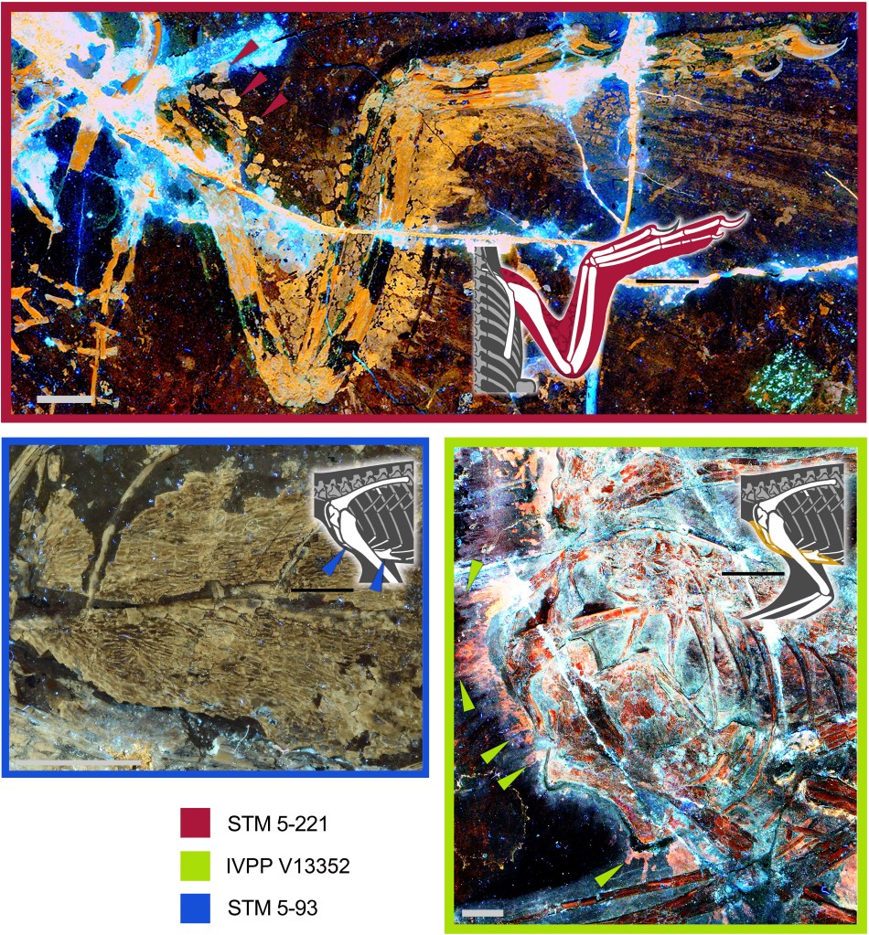 Références : Pittman, M.; Kaye, T.G.; Wang, X.; Zheng, X.; Dececchi, A.T.; Hartman, S.A., 2022, Preserved soft anatomy confirms shoulder-powered upstroke of early theropod flyers, reveals enhanced early pygostylian upstroke, and explains early sternum loss. PNAS. 119(47): e2205476119.