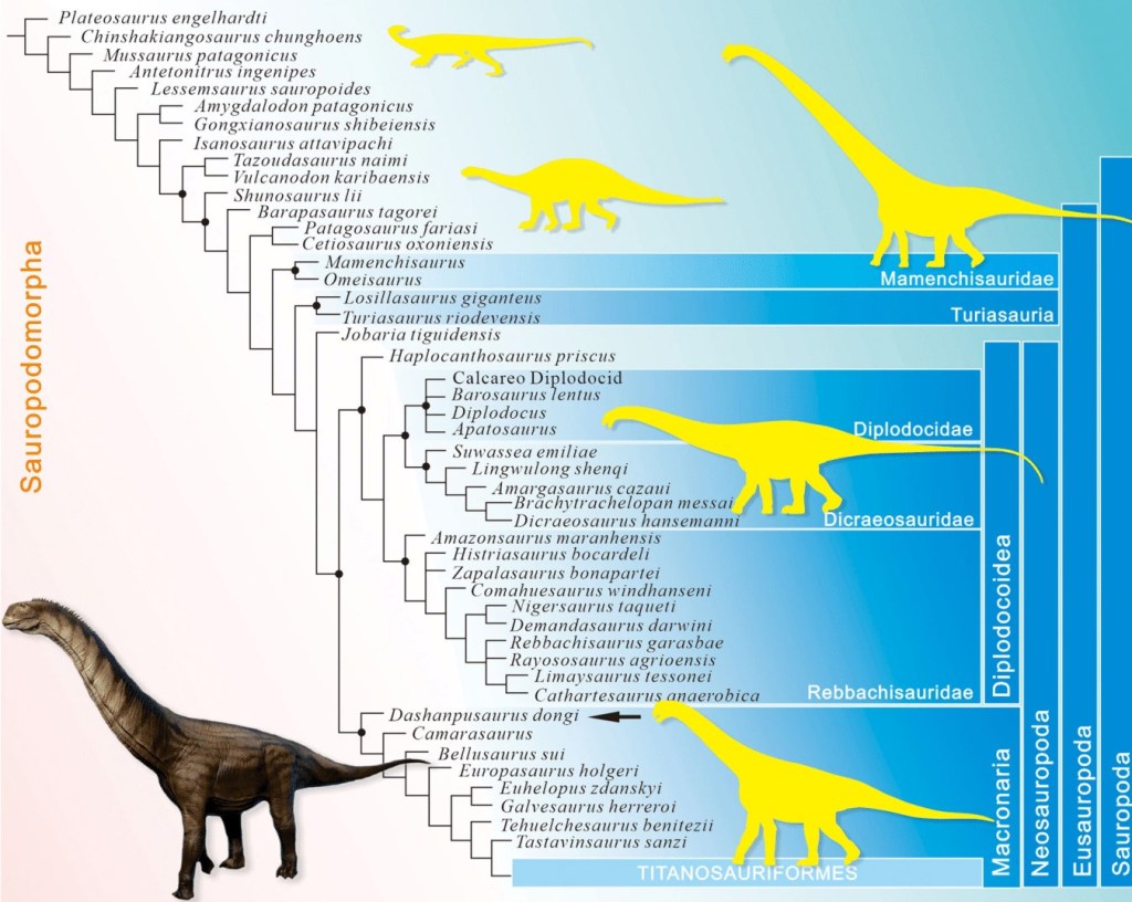 Références : Ren, X.X.; Jiang, S.; Wang, X.R.; Peng, G.Z.; Ye, Y.; King, L.; You, H.-L., 2022, Osteology of Dashanpusaurus dongi (Sauropoda: Macronaria) and new evolutionary evidence from Middle Jurassic Chinese sauropods. Journal of Systematic Palaeontology. 20: 1, 2132886.