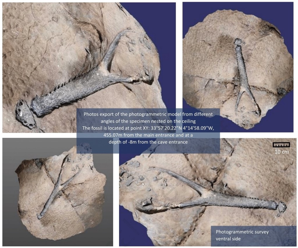 Le spécimen étudié par Hicham et ses collègues se trouve enchâssé dans les sédiments de la grotte et ne pouvait en être extrait. Pour l’étudier, ils ont réalisé une étude détaillée de cette zone de la grotte, en prenant des mesures des fossiles pour finalement en obtenir un modèle 3D par photogrammétrie. Cette modélisation 3D a permis de créer une reproduction du spécimen, enregistrée comme FSR Chaara SP 012022. Le spécimen originale de FSR Chaara SP 012022 se compose du crâne partiel, de plusieurs vertèbres, de côtes cervicales et de plusieurs ostéodermes. Hicham et ses collègues ont par ailleurs donné le nom informel de « Tazekka Teleosauridae » à ce spécimen.