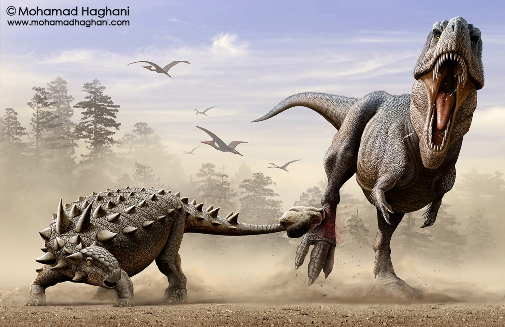 Les tyrannosauridés ont souvent été représentés chassant des ankylosauridés mais aucune preuve n’est disponible pour confirmer cette hypothèse. Arbour et ses collègues signalent que la faible mobilité de la queue des ankylosauridés joue en défaveur d’un usage défensif. Les armures des ankylosauridés ne présentent par ailleurs pas de blessures liées à la prédation des tyrannosauridés et les blessures des tyrannosauridés attribuées à des coups de queue en massue peuvent être liées à bien d’autres facteurs. Les ankylosauridés étant des composantes rares de leurs écosystèmes, ils ne devaient pas être une source de nourriture majeure pour les tyrannosauridés.