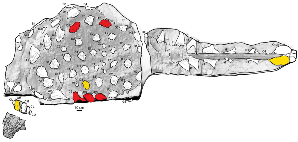 Référence : Arbour, V.M.; Zanno, L.E.; Evans, D.C., 2022, Palaeopathological evidence for intraspecific combat in ankylosaurid dinosaurs. Biology Letters. 18: 20220404.