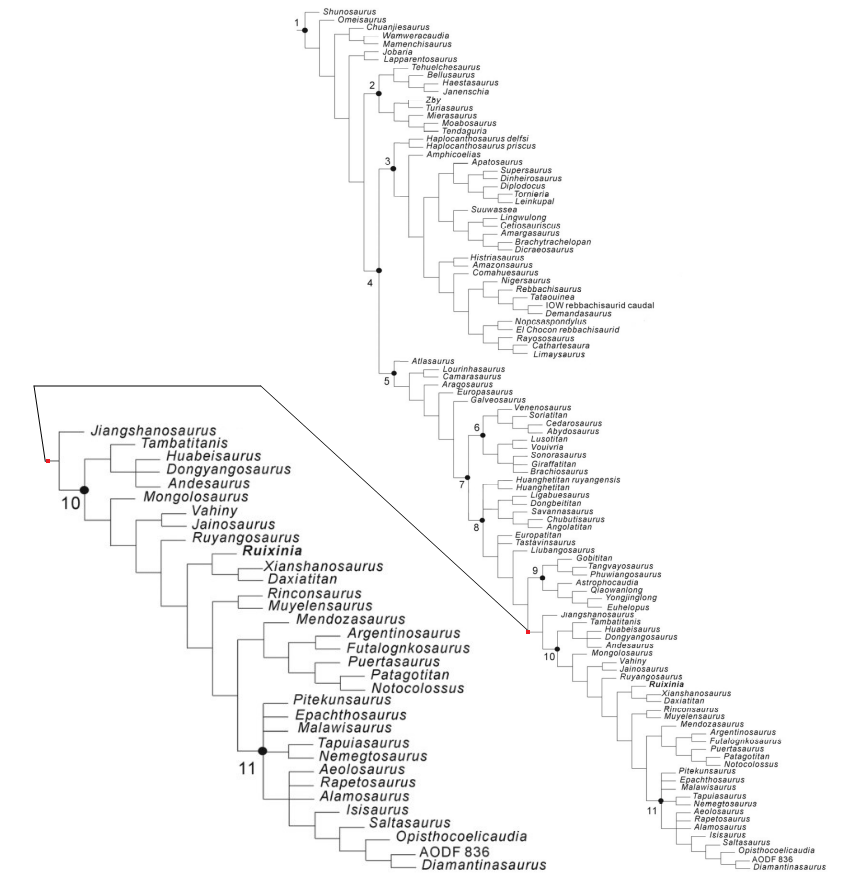 Un squelette particulièrement complet de sauropode fut découvert à Batuyingzi il y a quelques années, dans le Barrémien de la formation géologique de Yixian (Liaoning, Chine). Mo et ses collègues en font ainsi l’holotype (ELDM EL-J009) du nouveau genre Ruixinia (en l’honneur de Ruixin Zhang qui a contribué au développement de l’infrastructure où l’holotype est entreposé) avec R. zhangi pour espèce.