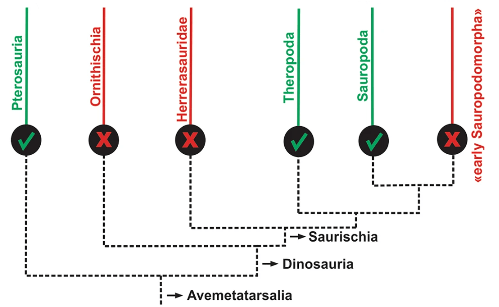 Référence : Aureliano, T.; Ghilardi, A.M.; Müller, R.T.; Kerber, L.; Pretto, F.A.; Fernandes, M.A.; Ricardi-Branco, F.; Wedel, M.J., 2022, The absence of an invasive air sac system in the earliest dinosaurs suggests multiple origins of vertebral pneumaticity. Scientific Reports. 12: 20844.