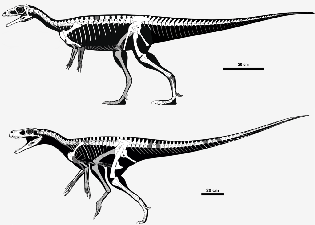 Les saurischiens basaux analysés par Aureliano et ses collègues sont l’herrerasauridé Gnathovorax et les sauropodomorphes Buriolestes et Pampadromaeus, provenant tous du Carnien de la formation géologique de Santa Maria (Rio Grande do Sul, Brésil). Les spécimens étudiés sont les holotypes de ces trois genres, avec pour Buriolestes le spécimen CAPPA/UFSM 0035, un squelette articulé presque complet, pour Gnathovorax le spécimen CAPPA/UFSM-0009, un squelette articulé presque complet et pour Pampadromaeus, le spécimen ULBRA-PV016, un squelette désarticulé presque complet. Aucune coupe ostéohistologique n’a été réalisée sur ces spécimens mais Aureliano et ses collègues attestent qu’il s’agit de juvéniles.
