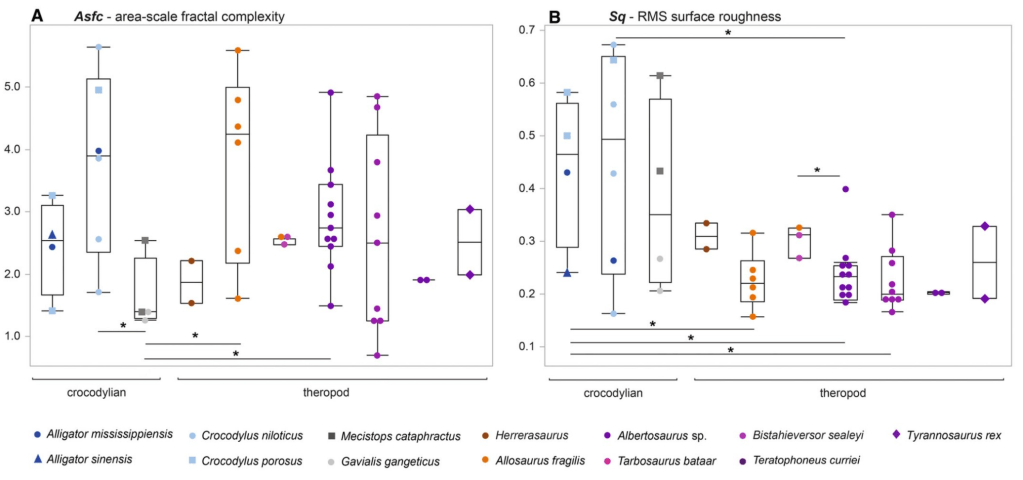 Référence : Winkler, D.E.; Kubo, T.; Kubo, M.O.; Kaiser, T.M.; Tütken, T., 2022, First application of dental microwear texture analysis to infer theropod feeding ecology. Palaeontology. 65(6): e12632.
