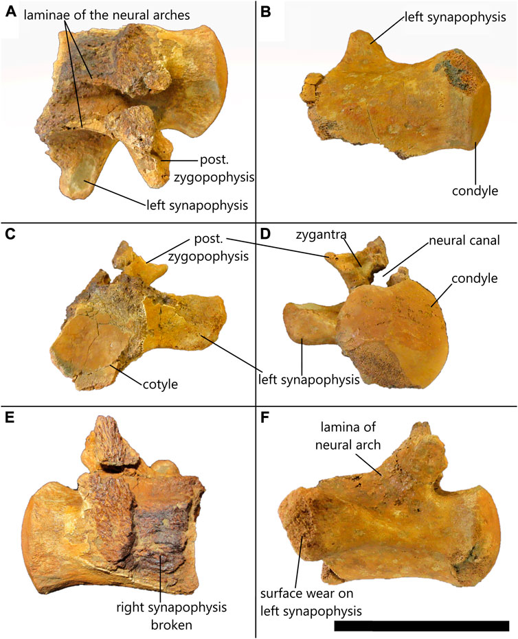 Les plioplatecarpinés sont une sous-famille des mosasauridés du crétacé supérieur et des prédateurs de taille moyenne spécialisés dans le chasse aux poissons et aux mollusques. En 2016, Chris Shelton découvre une vertèbre de mosasaure dans la péninsule de Nibela, dans des dépôts du Campanien supérieur (KwaZulu-Natal, Afrique du Sud). Woolley et ses collègues ont ainsi entrepris de redécrire les spécimens de mosasaures d’Afrique du Sud, ce qui a permis de référer cette vertèbre à Plioplatecarpinae indet.
