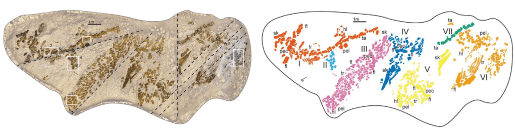 Référence : Kelley, N.P.; Irmis, R.B.; de Polo, P.E.; Noble, P.J.; Montague-Judd, D.; Little, H.; Blundell, J.; Rasmussen, C.; Percival, L.M.E.; Mather, T.A.; Pyenson, N.D., 2022, Grouping behavior in a Triassic marine apex predator. Current Biology. 32: 5398–5405.