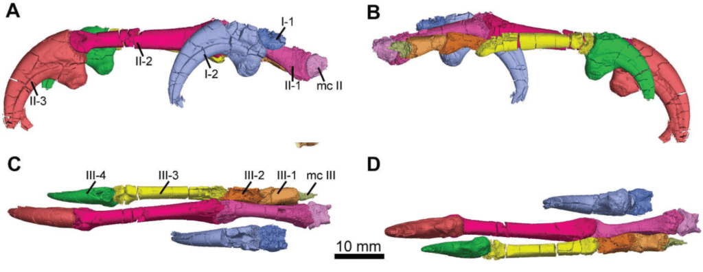 Référence : Yu, D.; Pei, R.; Yin, Y.-L.; Zhou, C.-F., 2022, The morphology and function of the manual digits of a troodontid from the Yixian Formation of western Liaoning, China. Historical Biology.