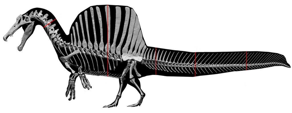 Références : Sereno, P.C.; Myhrvold, N.; Henderson, D.M.; Fish, F.E.; Vidal, D.; Baumgart, S.L.; Keillor, T.M.; Formoso, K.K.; Conroy, L.L., 2022, Spinosaurus is not an aquatic dinosaur. eLife. 11: e80092.