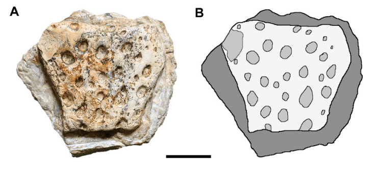 Lacerda et ses collègues ont également décrit un ostéoderme isolé (LPUFS 5854) qu’ils ont référé à Mesoeucrocodylia indet. Cet ostéoderme présente une forme presque trapézoïdale qui s’apparente à des ostéodermes de l’armure périphérique ou de l’armure gastrale de plusieurs mesoeucrocodyliens. Il est possible que cet ostéoderme appartienne à un goniopholididé ou un groupe apparenté, mais Lacerda et ses collègues préfèrent être prudents sur leur identification.