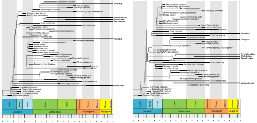 Solemys est une tortue classée dans la famille des helochelydridés, connue de nombreux gisements du Maastrichtien de France et d’Espagne. Elle est connue de deux espèces, l’espèce type S. gaudryi (France) et S. vermiculata (France et Espagne). Tong et ses collègues décrivent ainsi de nouveaux spécimens référables à Solemys du Maastrichtien de la formation géologique du Grès à Reptiles (Var, France).