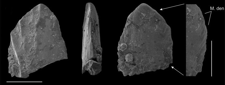 Le fossile décrit par Penn et Sweetman est un fragment de couronne dentaire (sans numéro d’identification), cataloguée IWCMS 2022.1003 avec d’autres microrestes de sauropsides du site. Ce fragment de dent présente une morphologie similaire à celle des iguanodontiens basaux comme Camptosaurus ou Dryosaurus. L’absence de caractéristiques distinctives et l’état incomplet de la dent ne permet pas d’affiner l’identification, ni d’être certain que la dent appartient bien à un iguanodontien. Pour ces raisons, Penn et Sweetman ont référé ce fragment de dent à Ornithopoda indet.