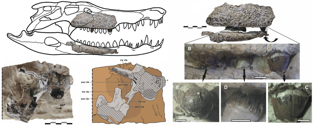 Références : Pinheiro, A.E.P.; Pereira, P.V.L.G.C.; Vasconcellos, F.M.; Brum, A.S.; De Souza, L.G.; Costa, F.R.; Castro, L.O.R.; Da Silva, K.F.; Bandeira, K.L.N., 2023, New Itasuchidae (Sebecia, Ziphosuchia) remains and the radiation of an elusive Mesoeucrocodylia clade. Historical Biology.