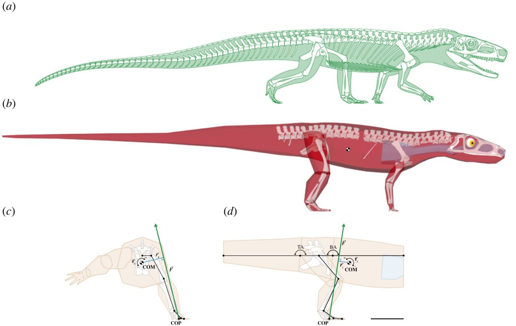 Référence : Demuth, O.E.; Wiseman, A.L.A.; Hutchinson, J.R., 2023, Quantitative biomechanical assessment of locomotor capabilities of the stem archosaur Euparkeria capensis. Royal Society Open Science. 10(1): 221195.