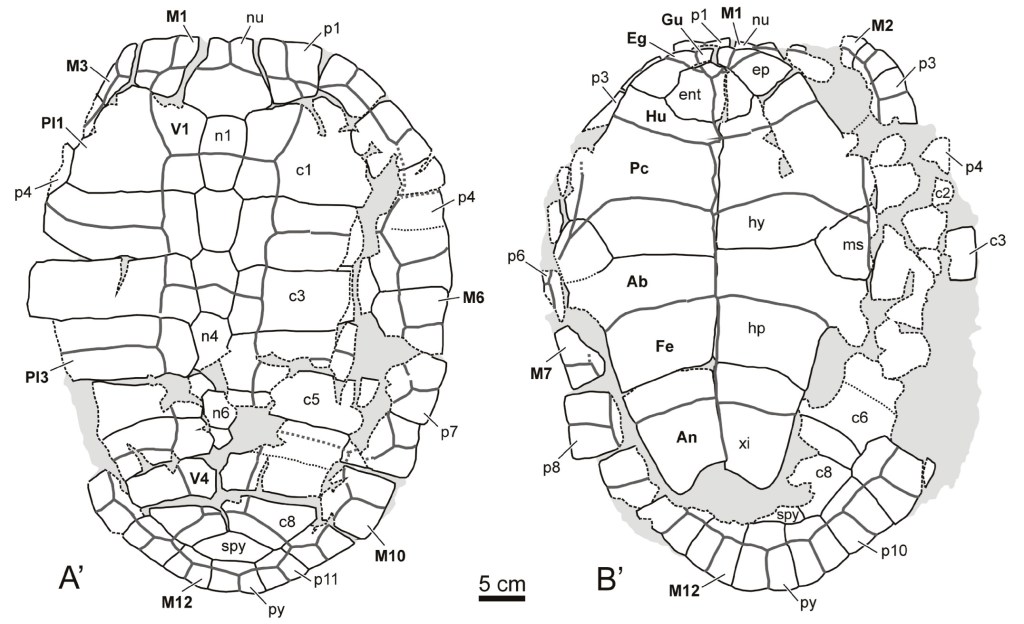 Références : Abdel Gawad, M.; Pérez-García, A.; Hirayama, R.; Mohesn, S.; Tantawy, A.-A.; Abu El-Kheir, G., 2023, The First Side-Necked Turtle (Pleurodira, Bothremydidae) from the Campanian (Late Cretaceous) of Egypt. Diversity. 15: 284.