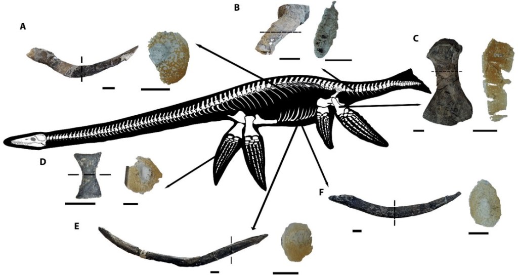 Références : D’Angelo, J.S.; Marsà, J.A.G.; Agnolín, F.L.; Novas, F.E., 2023, Biological implications of the bone microstructure of a new elasmosaurid (Sauropterygia, Plesiosauroidea) from the uppermost Cretaceous of Patagonia. Historical Biology.