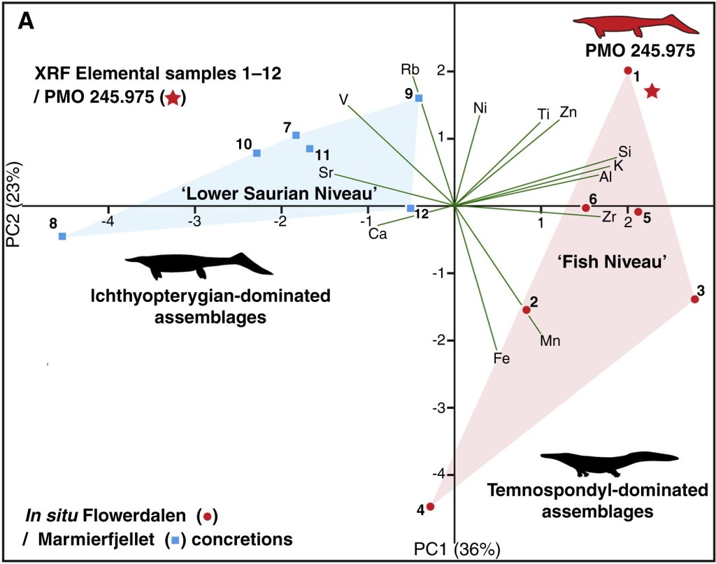 Les ichthyosauromorphes sont un groupe très diversifié de sauropsides marins, que l’on connaît du début du trias au milieu du crétacé. Dans le trias inférieur de Norvège, plusieurs genres sont connus, avec les formes basales Isfjordosaurus, Grippia, Omphalosaurus et Pessopteryx. Kear et ses collègues décrivent ainsi la découverte d’un nouveau spécimen d’ichthyosauromorphe découvert dans l’Olénékien de la formation géologique de Vikinghøgda (Svalbard, Norvège).