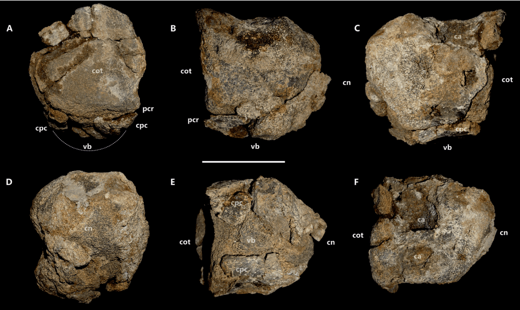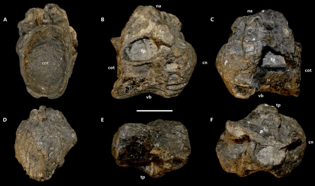 Ornithopsis est un sauropode titanosauriforme connu d’une poignée de spécimens du Barrémien de l’Angleterre. L’espèce-type est O. hulkei et son lectotype est une vertèbre dorsale (NHMUK R28632). Peu de fossiles ont été rapportés à cette espèce, mais O. hulkei présente une morphologie vertébrale très distincte qui rend l’espèce valide. En 2000, un site de remplissage de fissures karstiques fut découvert à Balve-Beckum (Nordrhein-Westfalen, Allemagne). Les sédiments remplissant ces fissures datent du Barrémien-Aptien. Depuis 2002, des fouilles sont menées sur ce site, mettant au jour principalement des microfossiles, et occasionnellement des macrofossiles. Hornung et ses collègues décrivent ainsi plusieurs spécimens de sauropodes provenant du site de Balve-Beckum (voir cet article), y compris un spécimen d’Ornithopsis.