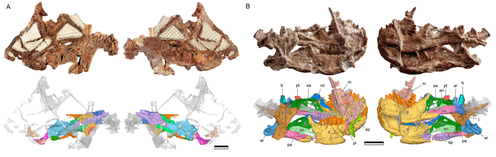 Références : Becerra, M.G.; Pol, D.; Porro, L.B.; Paulina-Carabajal, A.; Rauhut, O.W.M., 2023, Craniomandibular osteology of Manidens condorensis (Ornithischia: Heterodontosauridae) from the upper Lower Jurassic of Argentina. Journal of Vertebrate Paleontology.