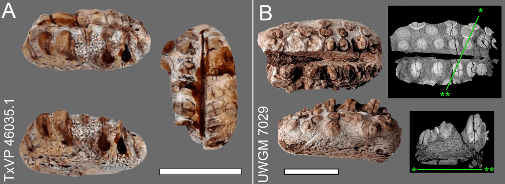 Référence : Fitch, A.J.; Haas, M.; C’Hair, W.; Ridgley, E.; Ridgley, B.; Oldman, D.; Reynolds, C.; Lovelace, D.M., 2023, A New Rhynchosaur Taxon from the Popo Agie Formation, WY: Implications for a Northern Pangean Early-Late Triassic (Carnian) Fauna. Diversity. 15: 544.