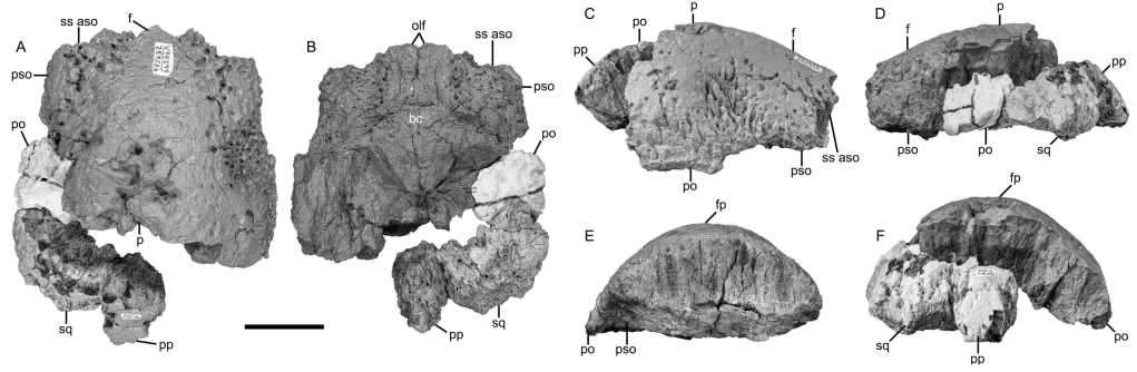 Références : Horner, J.H.; Goodwin, M.B.; Evans, D.C., 2023, A new pachycephalosaurid from the Hell Creek Formation, Garfield County, Montana, U.S.A.. Journal of Vertebrate Paleontology.