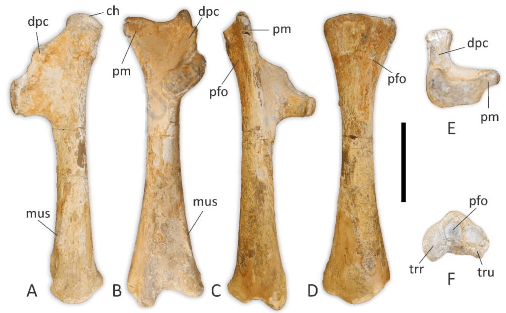 Les spécimens décrits par Duque et ses collègues sont un humérus gauche isolé complet (MCNHBJ 363), un spécimen composé des scapulas, des coracoïdes, d’une vertèbre cervicale et d’une côte dorsale (MCNHBJ 340) et un bassin presque complet (MCNHBJ 341). Tous ces individus sont des spécimens immatures, à un stade de développement plus ou moins avancé. MCNHBJ 363, MCNHBJ 340 et MCNHBJ 341 sont trop fragmentaires pour être attribués à un taxon précis. Pour cette raison, Duque et ses collègues se contentent de les référer à Anhangueridae indet.