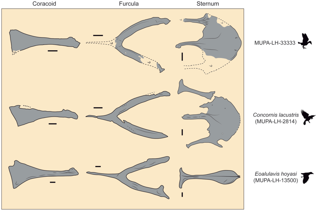 Référence : Nebreda, S.M.; Chiappe, L.M.; Navalon, G.; Chinsamy, A.; Sanz, J.L.; Buscalioni, A.D.; Marugán-Lobón, J., 2023, A new enantiornithine specimen from the Lower Cretaceous of Las Hoyas: avifaunal diversity and life-history of a wetland Mesozoic bird. Spanish Journal of Palaeontology. 38.