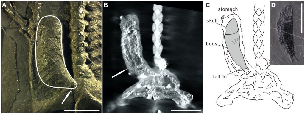 Référence : Li, J.; Lehrmann, D.J.; Luo, Y.-M.; Adams, T.L.; Yu, M.-Y.; Liao, J.-L.; Qin, Y.-J.; Li, Y.-L.; Wang, Y., 2023, Soft tissue preservation in the Triassic pachypleurosaur Keichousaurus hui: evidence for digestive tract anatomy, diet, and feeding behavior. Frontiers in Ecology and Evolution. 11: 1186354.