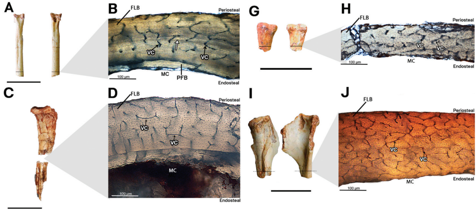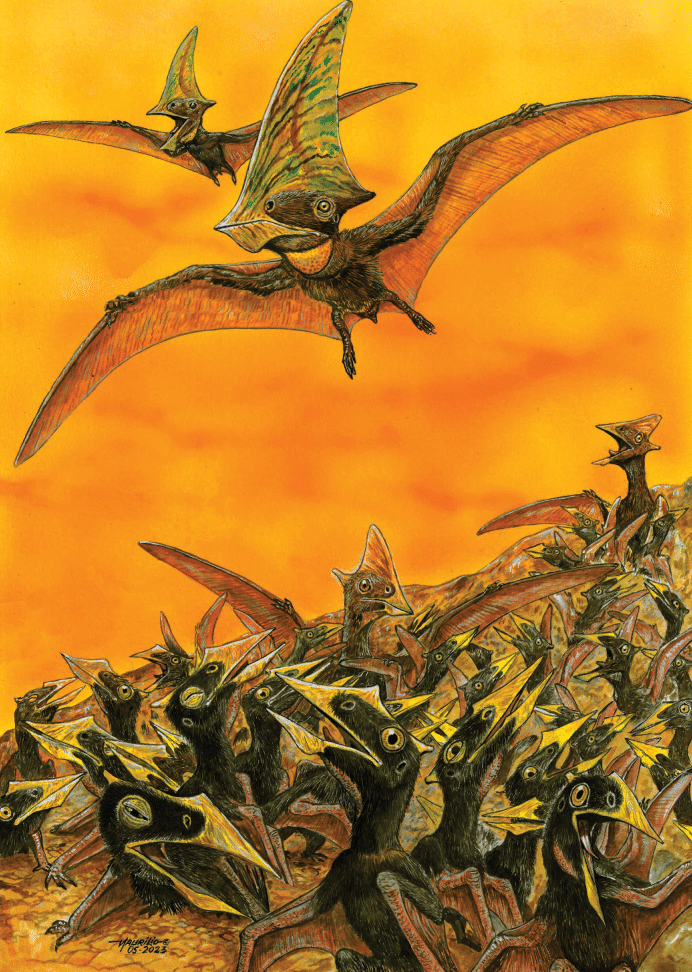 Références : Araújo, E.V.; Bantim, R.A.M.; Holgado, B.; Sayão, J.M.; Weinschütz, L.C.; Kellner, A.W.A., 2023, Osteohistological characterization and ontogeny of Caiuajara dobruskii (Pterosauria, Pterodactyloidea, Tapejaridae). Historical Biology.