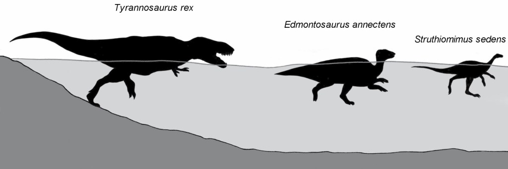 Blanco part du postulat que Tyrannosaurus présentait un avantage biomécanique sur ses proies dans un environnement d’eau peu profonde. En effet, Tyrannosaurus était plus massif que la plupart de ses proies comme les hadrosauridés, les pachycephalosaures ou encore les petits théropodes. Une exception peu être faite pour les cératopsiens, mais leurs crânes ornementés en auraient fait de mauvais nageurs. Tyrannosaurus présentait aussi des membres postérieurs plus longs qui lui permettaient de rester en contact avec le sol à de plus grandes profondeurs d’eau. Blanco a ainsi analysé l’impact de la profondeur d’eau sur la vitesse de Tyrannosaurus ainsi que sur deux de ses proies potentielles : l’ornithopode Edmontosaurus et le petit théropode ornithomimidé Struthiomimus.