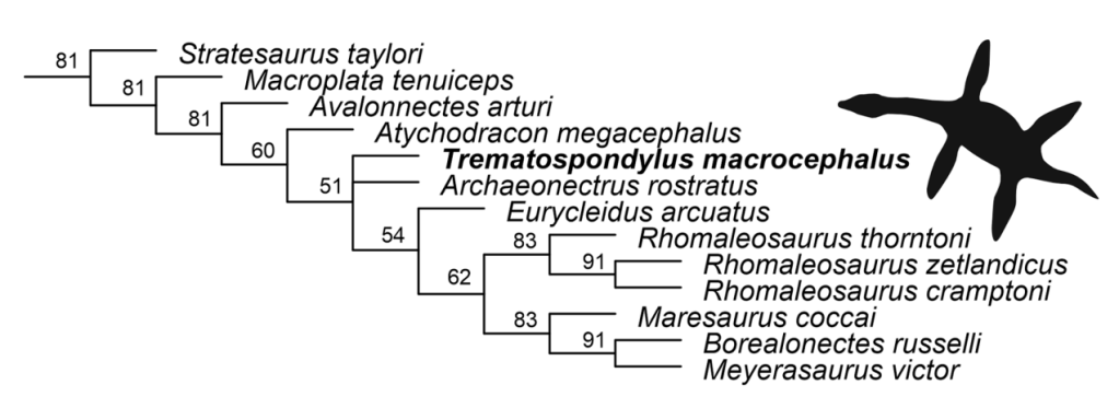 L’holotype (GPIT-PV-45457) de Trematospondylus macrocephalus est donc composé d’un centrum sacral et de six centrum caudaux. Sachs et ses collègues ont analysé en détail les caractères de GPIT-PV-45457, afin de connaître ses caractéristiques morphologiques. Ils ont alors pu étudier le classement de Trematospondylus dans une analyse phylogénétique. Sachs et ses collègues retrouvent ainsi Trematospondylus au sein de Rhomaleosauridae, dans une position intermédiaire proche d’Archaeonectrus.