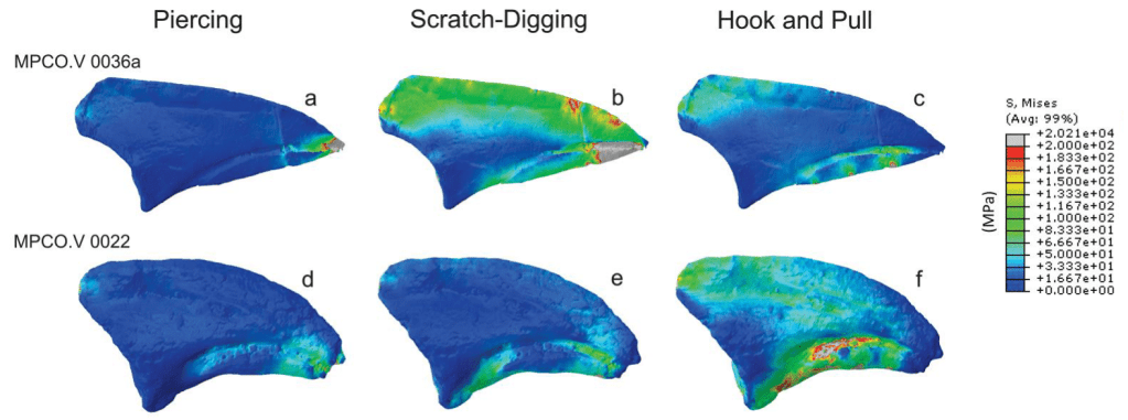 Références : Barbosa, G.G.; Langer, M.C.; de Oliveira Martins, N.; Montefeltro, F.C., 2023, Assessing the palaeobiology of Vespersaurus paranaensis (Theropoda, Noasauridae), Cretaceous, Bauru Basin – Brazil, using Finite Element Analysis. Cretaceous Research. 105594.