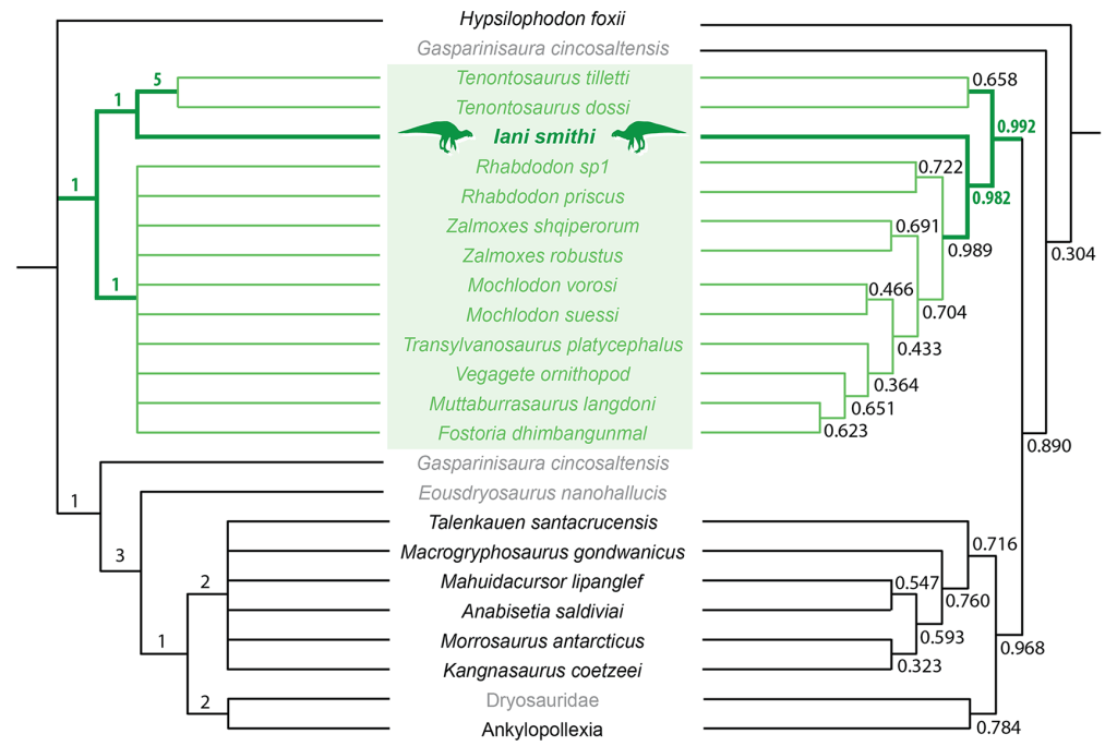 L’analyse phylogénétique de Zanno et ses collègues a classé Iani dans Rhabdodontomorpha avec plusieurs possibilités. Iani peut être le taxon-soeur de Tenontosaurus ou bien un taxon de transition entre Tenontosaurus et les rhabdodontidés. La description d’Iani permet ainsi de combler une lacune évolutive qui existait jusque là entre Tenontosaurus du crétacé inférieur et les rhabdodontidés du crétacé supérieur.
