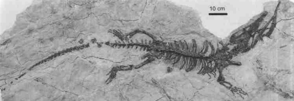 Jun, L., 2004, A nearly complete skeleton of Ikechosaurus pijiagouensis sp. nov. (Reptilia: Choristodera) from the Jiufotang formation (Lower Cretaceous) of Liaoning, China. Vertebrata PalAsiatica. 43(2): 120.