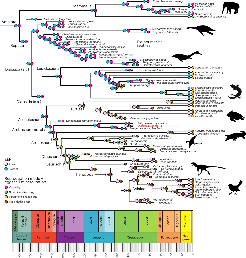 Référence : Jiang, B.; He, Y.; Elsler, A.; Wang, S.; Keating, J.N.; Song, J.; Kearns, S.L.; Benton, M.J., 2023, Extended embryo retention and viviparity in the first amniotes. Nature Ecology & Evolution.