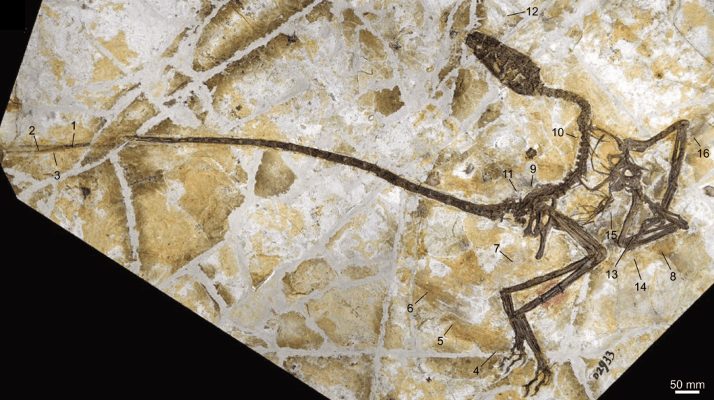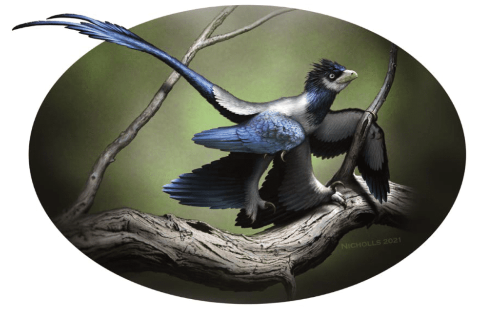 Références : Croudace, A.D.; Shen, C.; Lü, J.; Brusatte, S.L.; Vinther, J., 2023, Iridescent plumage in a juvenile dromaeosaurid theropod dinosaur. Acta Palaeontologica Polonica. 68(X): xxx–xxx.