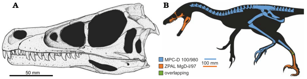 Références : Czepiński, Ł., 2023, Skull of a dromaeosaurid dinosaur Shri devi from the Upper Cretaceous of the Gobi Desert suggests convergence to the North American forms. Acta Palaeontologica Polonica. 68(X): xxx–xxx.