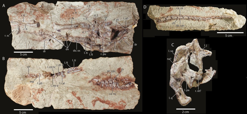 Références : Spiekman, S.N.F., 2023, A revision and histological investigation of Saltoposuchus connectens (Archosauria: Crocodylomorpha) from the Norian (Late Triassic) of south-western Germany. Zoological Journal of the Linnean Society. zlad035.