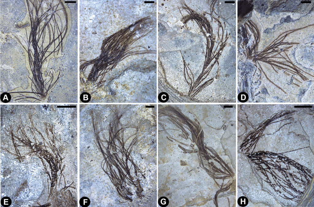 Référence : Zhang, J.; Du, B.; Lin, S.; Peng, J.; Li, A.; Zhang, M.; Ma, G.; Hui, J.; Jiaoba, D.; Liu, G., 2023, Downy feather fossils from the Lower Cretaceous of the Jiuquan Basin, Gansu Province, Northwest China. Cretaceous Research. 105653.