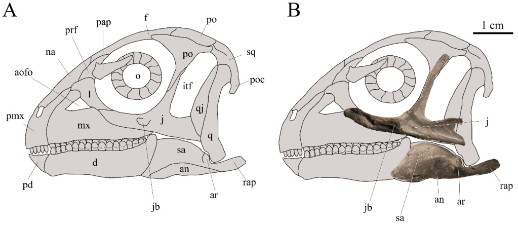 Références : Manitkoon, S.; Deesri, U.; Khalloufi, B.; Nonsrirach, T.; Suteethorn, V.; Chanthasit, P.; Boonla, W.; Buffetaut, E., 2023, A New Basal Neornithischian Dinosaur from the Phu Kradung Formation (Upper Jurassic) of Northeastern Thailand. Diversity. 15: 851.