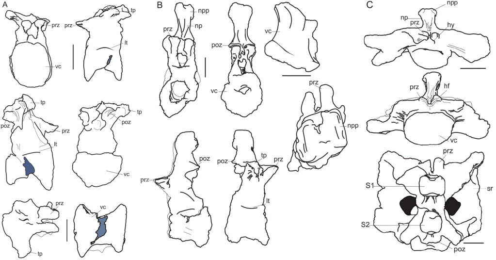 Référence : Silva, F.O.; Martinelli, A.G.; Ferigolo, J.; Ribeiro, A.M., 2023, A new herrerasaurid dinosaur record from southern Brazil (Upper Triassic) and its faunal association. Revista Brasileira De Paleontologia. 26(2): 97–113.